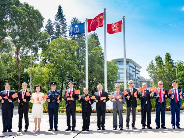 科大舉行升旗儀式慶祝中華人民共和國成立七十五周年 師生組「75」字樣賀國慶