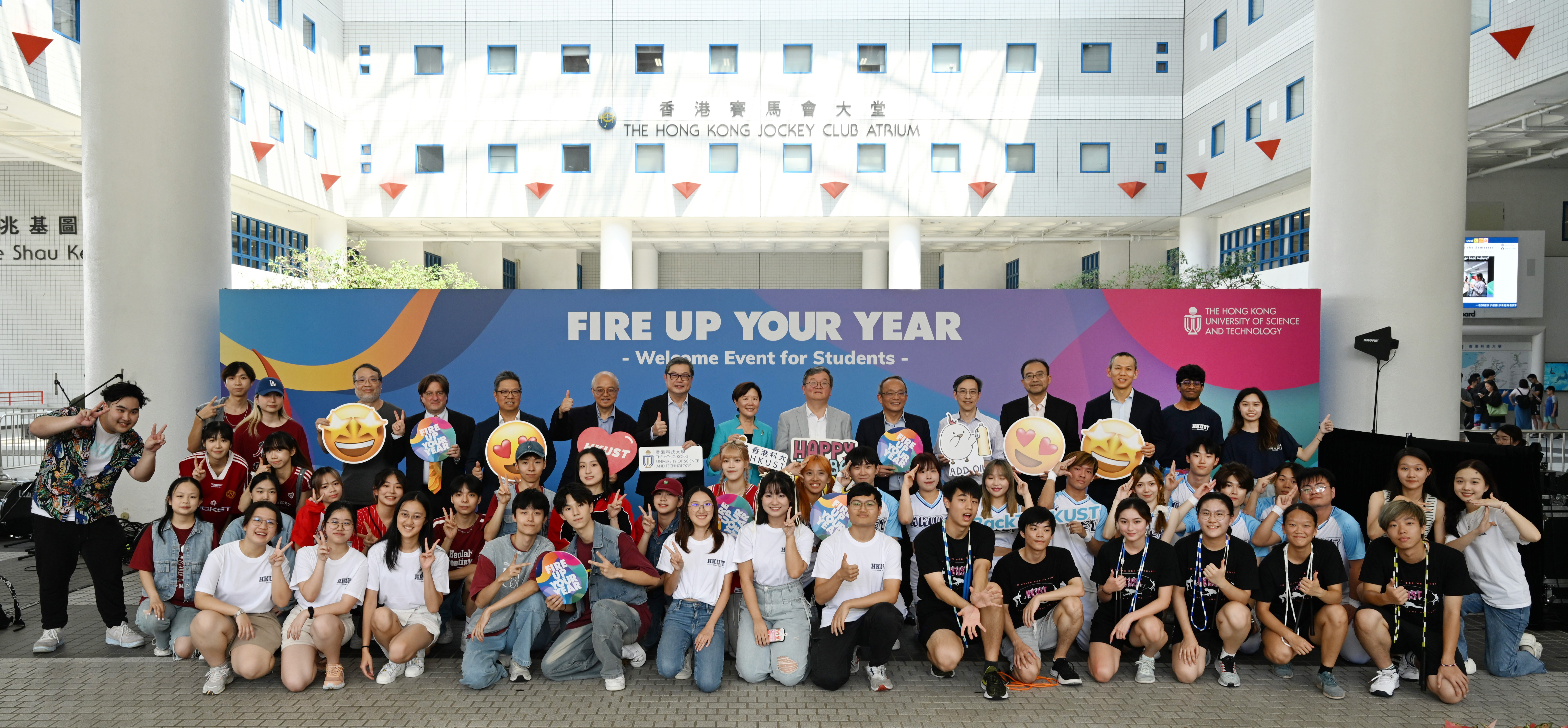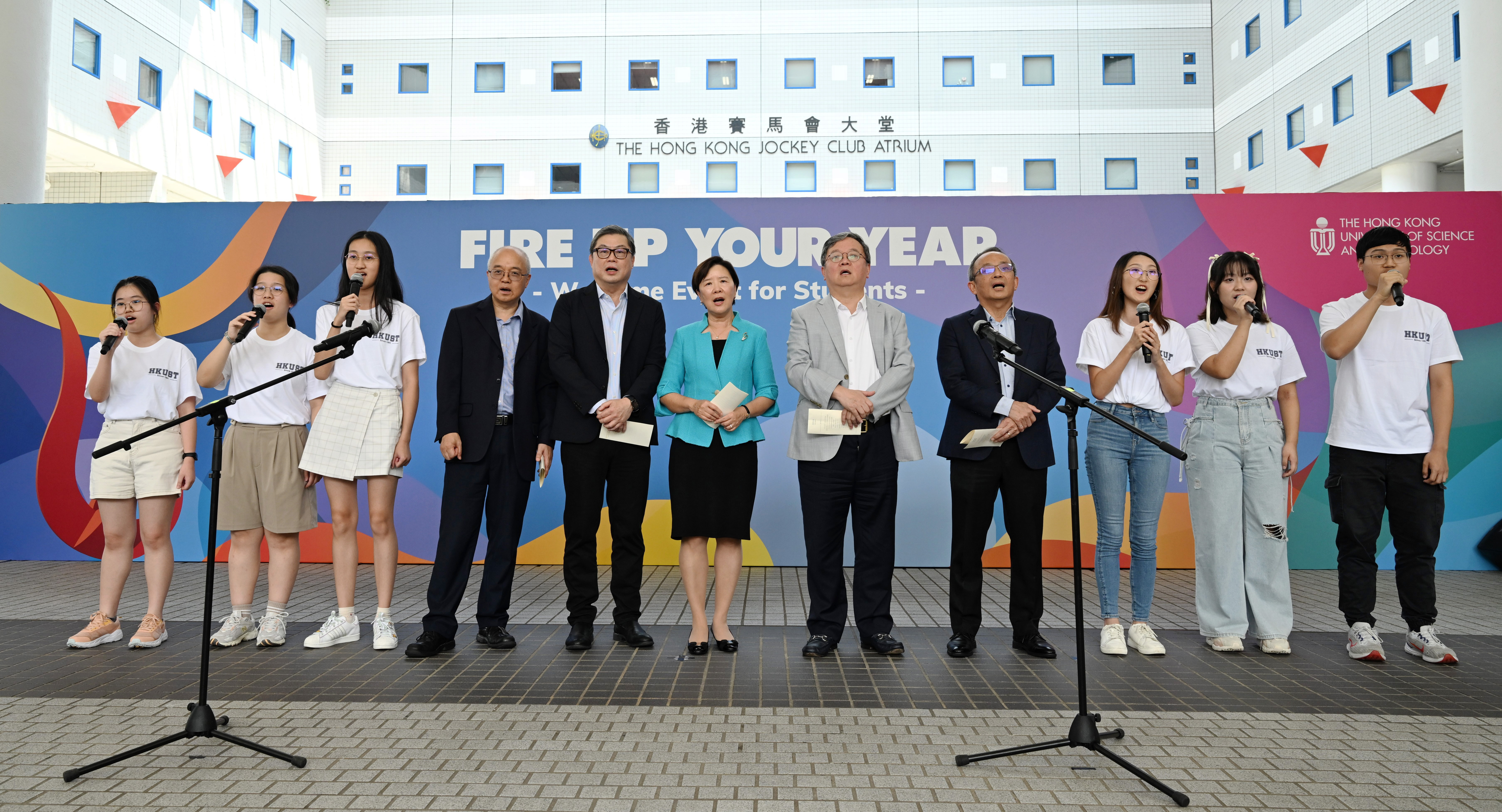 迎接新學年,香港科技大學(科大)今日(九月二日)起舉行為期兩天的開學嘉年華「Fire Up Your Year」,校長葉玉如教授聯同一眾副校長及管理層出席,與新生大玩問答遊戲,陪伴他們開啟人生的新篇章!為培養新成員對大學之歸屬感,學生不但甫進校園便能聽到科大校歌的悠揚旋律,校長及副校長們更帶領新生合唱,與學生打成一片,以歌聲凝聚大學社群。